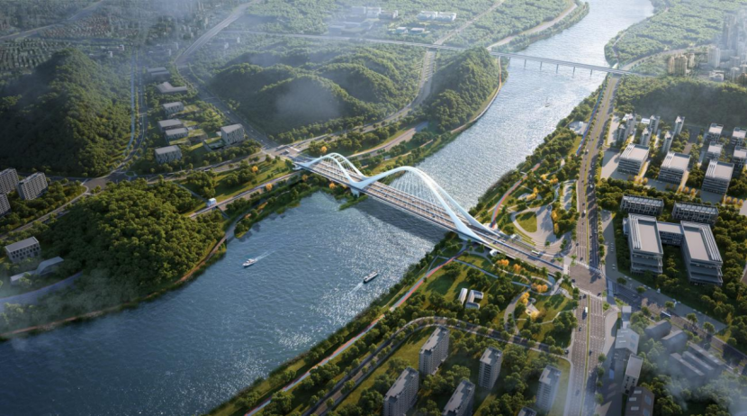 近日,由中國聯合城鄉建設工程設計研究院設計的麗水聯城科創產業園及基礎設施工程-路灣大橋及花街路管網延伸段工程已通過圖審,即將開工建設!路灣大橋地處三江口都市活力核中心位置,按城市一級主干路建設,是連接麗水南北城重要的過江通道。項目全長約682米,寬47米,單跨跨度達220米,雙向六車道。為實現橋梁造型與技術的創新融合,城鄉建設院組建“造型+技術雙設計團隊”緊密協作。造型團隊以“山巒浮動,融于天地”的設計理念,塑造了地標性與環境協調性兼具的橋梁形態;技術團隊全力攻克異形大跨度高拱技術難關,采用三跨連續下承式梁拱組合體系結構,一跨過主河槽,實現橋梁結構與造型的完美統一。這座凝聚智慧與匠心的橋梁,必將成為麗水嶄新的城市名片。