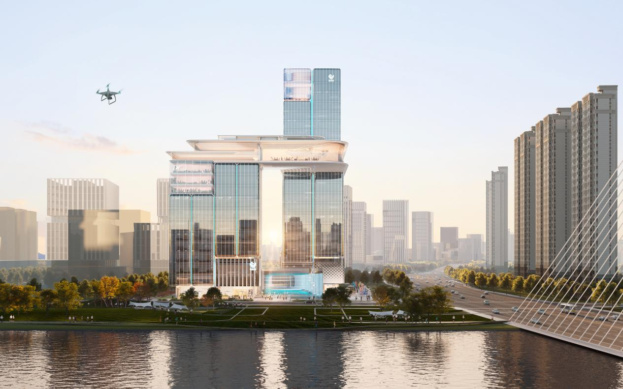該項(xiàng)目位于浙江省杭州市上城區(qū),總建筑面積約7.1萬平方米。地塊定位為義烏中國小商品城集團(tuán)功能性總部基地,設(shè)立Yiwupay全球總部、Chinagoods技術(shù)研發(fā)中心、浙江智庫、四星級(jí)商務(wù)酒店等功能。項(xiàng)目以“義杭共振·織網(wǎng)鏈城”為核心設(shè)計(jì)理念,依托義烏全球小商品產(chǎn)業(yè)優(yōu)勢和杭州數(shù)字創(chuàng)新資源,以“總部基因+外商內(nèi)辦+外展內(nèi)院”為空間策略,形成“技術(shù)研發(fā)-產(chǎn)業(yè)轉(zhuǎn)化-全球布局”的閉環(huán)式數(shù)字經(jīng)濟(jì)生態(tài)體系。項(xiàng)目塑造了“枕河望江·數(shù)智云窗”的建筑形態(tài),通過空中連廊、共享邊庭、云端會(huì)客廳等設(shè)計(jì),實(shí)現(xiàn)建筑與自然景觀的無界融合,成為杭州錢江新城二期濱水金融總部標(biāo)桿,打造都市活力新地標(biāo),項(xiàng)目建成后將為錢江新城二期產(chǎn)城融合升級(jí)注入新動(dòng)能。